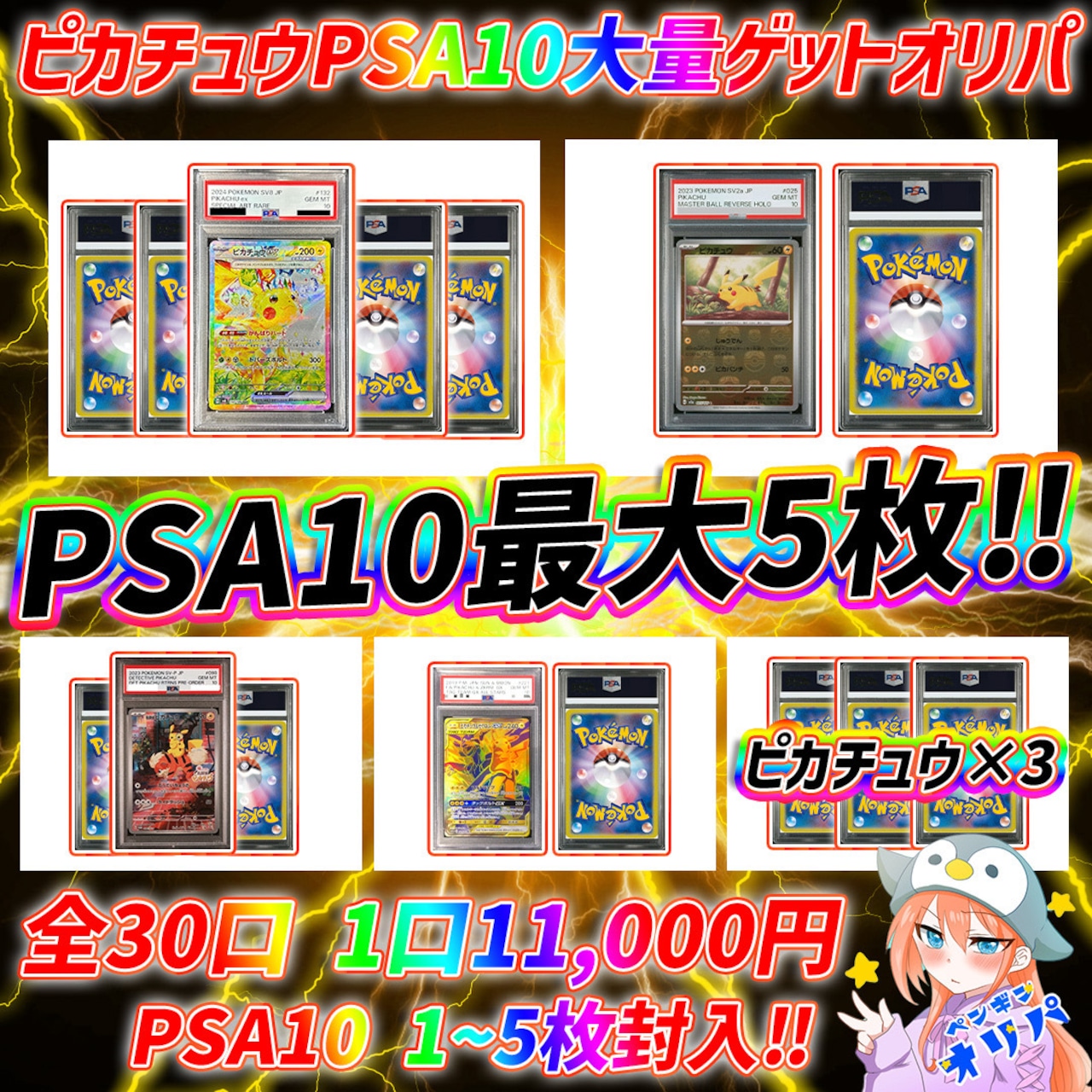 10/3 ピカチュウPSA10大量GETオリパ 〜1から最大5枚PSA10封入〜