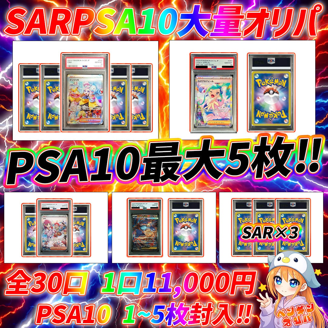 ナンジャモSAR PSA10含む5枚セット×1、ルチアのアピールSAR PSA10含む2枚セット×1、タロ SAR PSA10含む3枚セット×1、メガラティアスSAR PSA10含む2枚セット×1、SAR PSA10 3枚セット×1