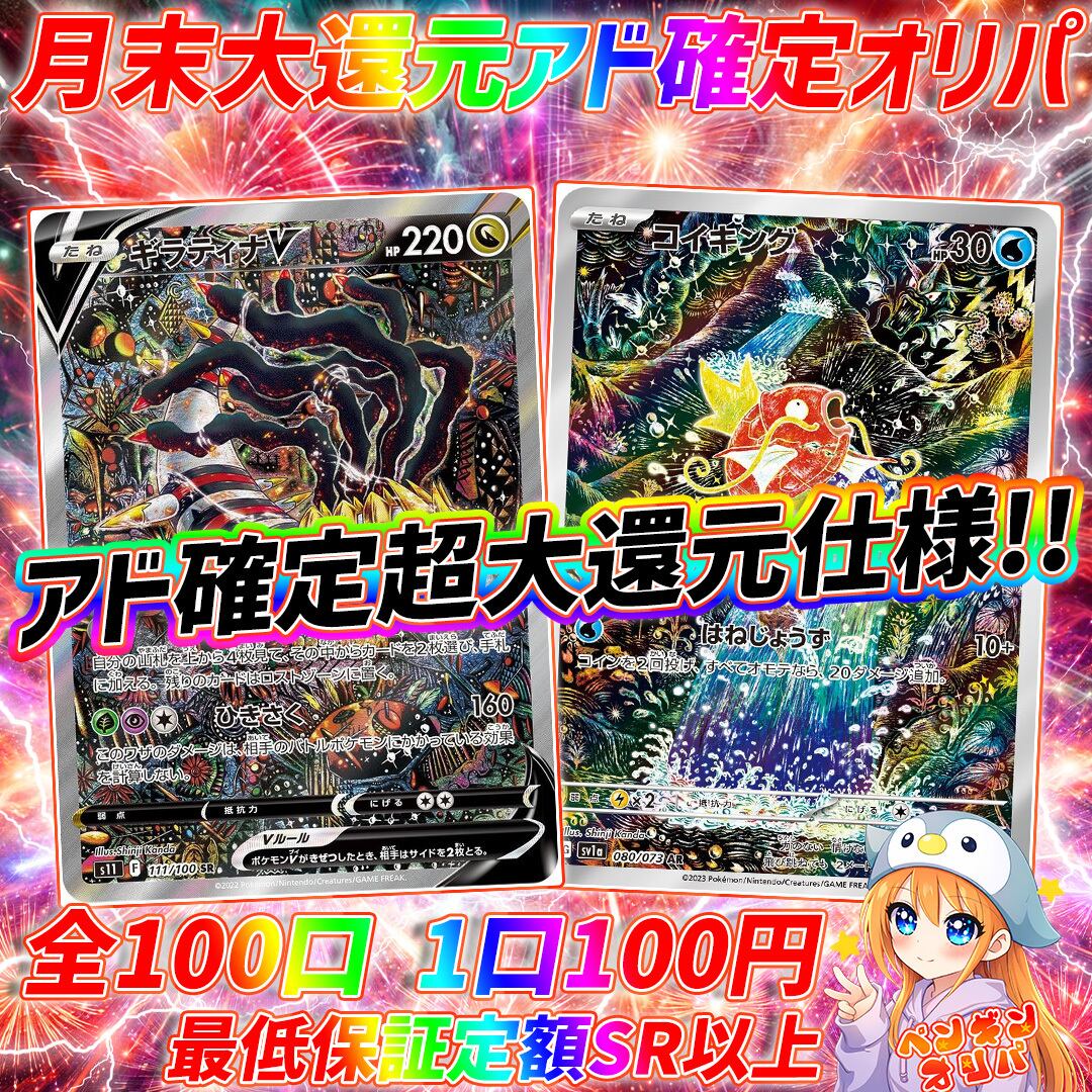 1/28 月末大還元アド確定100円オリパ 〜100円でギラティナ封入の激熱仕様〜
